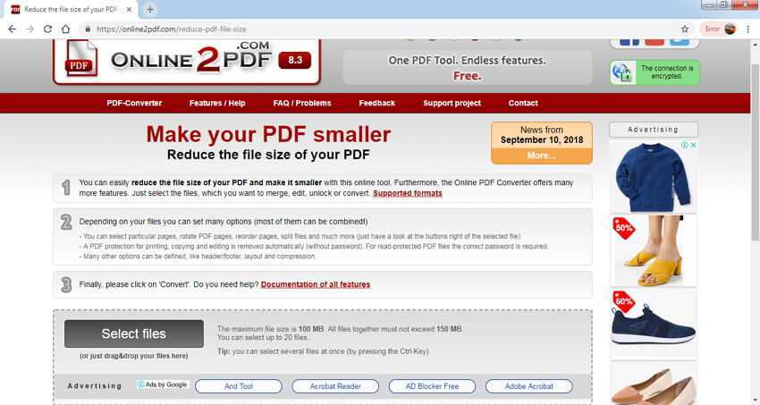 Эта бесплатная в использовании онлайн-программа позволяет уменьшить размер вашего PDF-файла за несколько простых шагов. С помощью этого инструмента можно выполнять множество других функций, таких как выбор определенных страниц, изменение порядка страниц, их поворот, разделение и другие. Верхний, нижний колонтитулы и макет также могут быть определены по мере необходимости. В программу можно добавить несколько файлов (максимум 20) с размером файла не более 100 МБ. Размер всех файлов вместе не может превышать 150 МБ. Размер документа можно уменьшить, изменив его качество, разрешение и цвет.