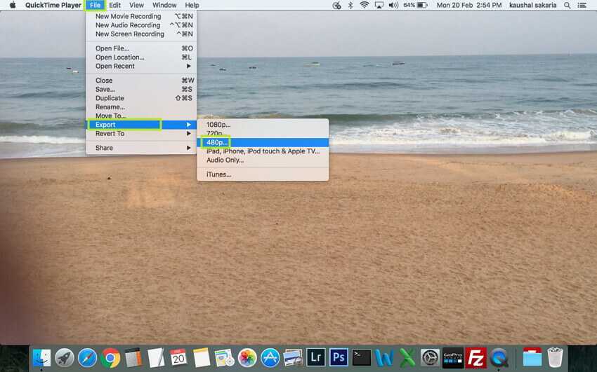 Добавьте файлы MOV в QuickTime и выберите нужное разрешение видео, а затем измените его, щелкнув Файл > Экспорт. Не уменьшайте разрешение слишком сильно, иначе качество видео сильно ухудшится. Уменьшите разрешение, чтобы получить файл меньшего размера. Это также можно сделать в программном обеспечении для конвертации файлов.