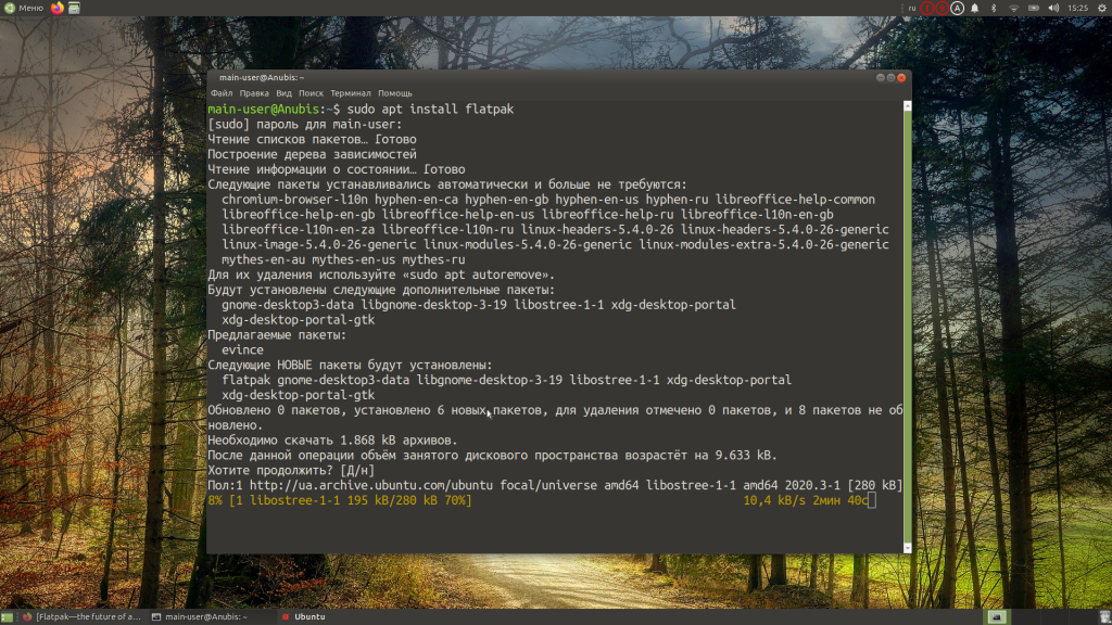 Если же Flatpack отсутствует, нужно предварительно заняться его установкой. Выполните команду: