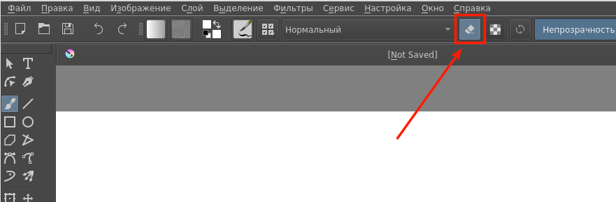 Переключить кисточку в режим ластика можно нажатием кнопки «E» (английская) на клавиатуре.
