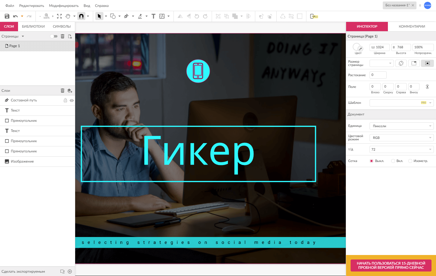 Gravit Designer — один из лучших бесплатных векторных графических редакторов, в котором есть все необходимые дизайнеру средства. В нем вы найдете мощную и разумно устроенную панель управления, настраиваемый интерфейс, современные средства редактирования и поддержку перетаскивания объектов. Есть все, что нужно: от цветокоррекции и регулировки освещения до фильтров и смешивания слоев. Интерфейс переведен на русский язык, но при желании можно переключиться на английский.