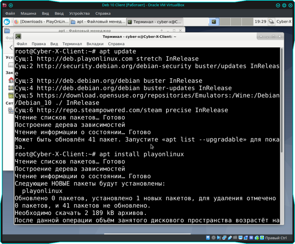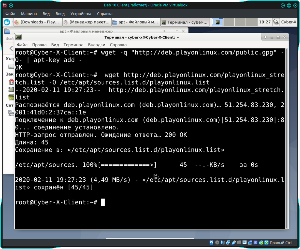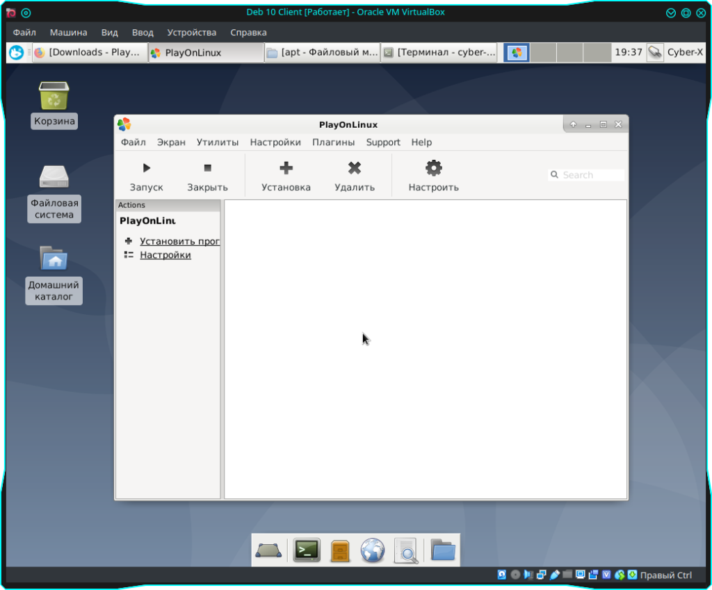 Рассмотрим два варианта установки. Первый скачаем и установим playonlinux. А второй при помощи добавления репозитория. Замечу, что репозиторий для Debian на данный момент существует ли для Stretch. То есть, для Debian 9, в то время как уже вышла 10 версия Debain. Сам репозиторий пока что действующий и из него вполне можно поставить playonlinux.
