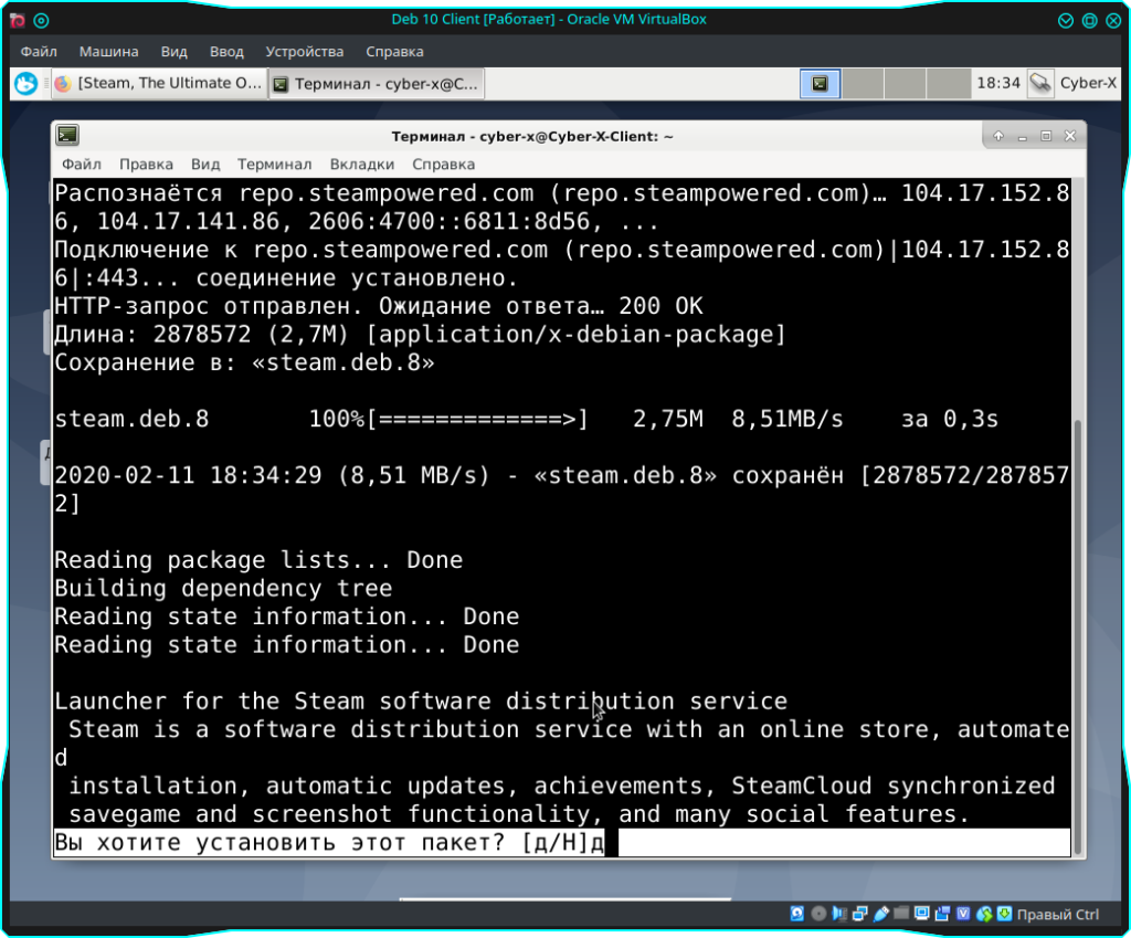 После скачивания запустится установка. Тут нужно будет только подтвердить ваше согласие. Стоит отметить, что подтвердить установку вы должны русской буквой “д”. В противном случае установка прекратится.