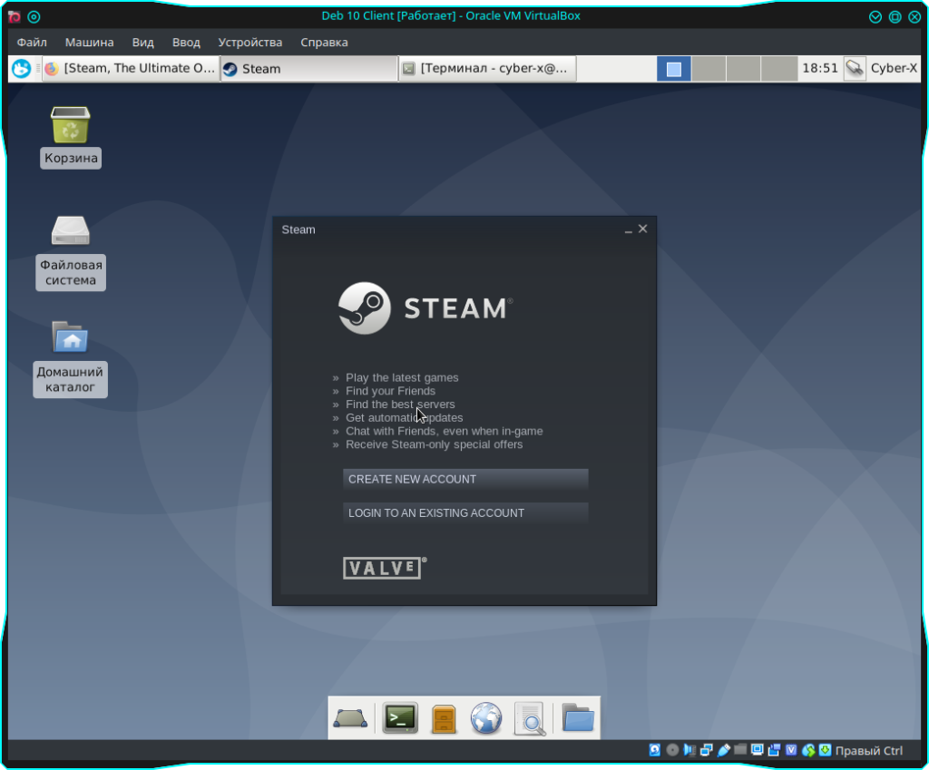 Ну а дельше регистрируетесь и можете приступать к установке игр. Стоит заметить, что нужно в настройках Steam указать запуск игр через Proton.