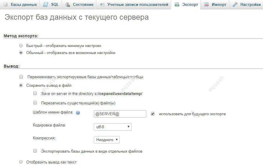 Как сделать экспорт в phpMyAdmin