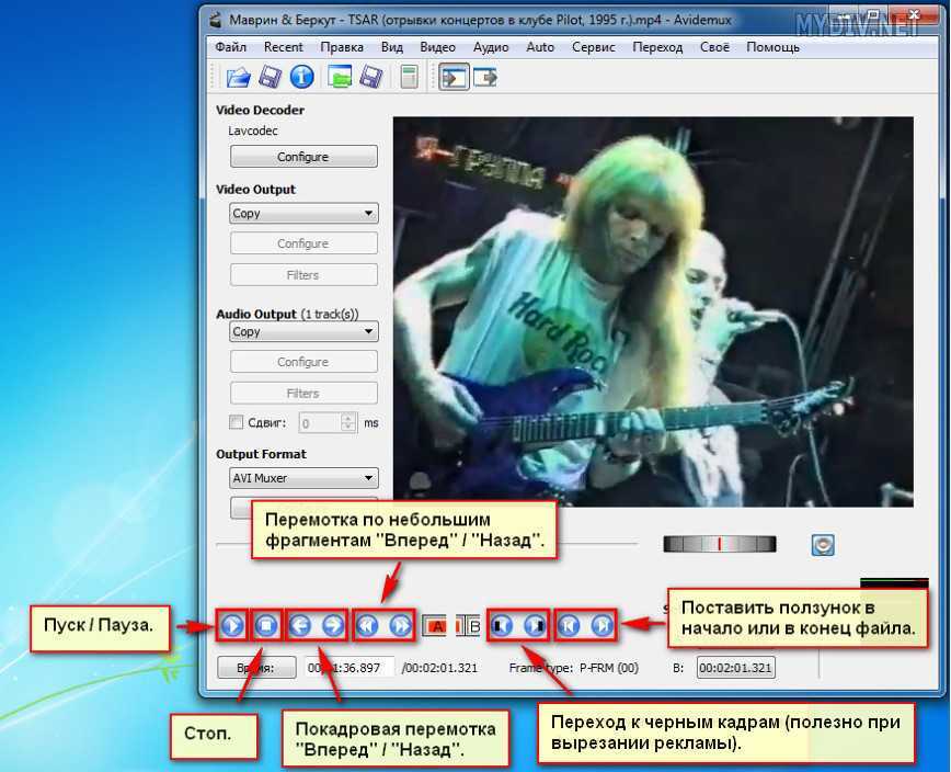 . Второй «урок». На нём мы познакомимся с боковой панелью. Это та, где написано «копировать-копировать». На самом деле, копировать — это настройки по-умолчанию. Если Вам надо вырезать из ролика кадры с любимой тёщей, Avidemux это сделает и сохранит ролик в том же формате, в котором оно и было.