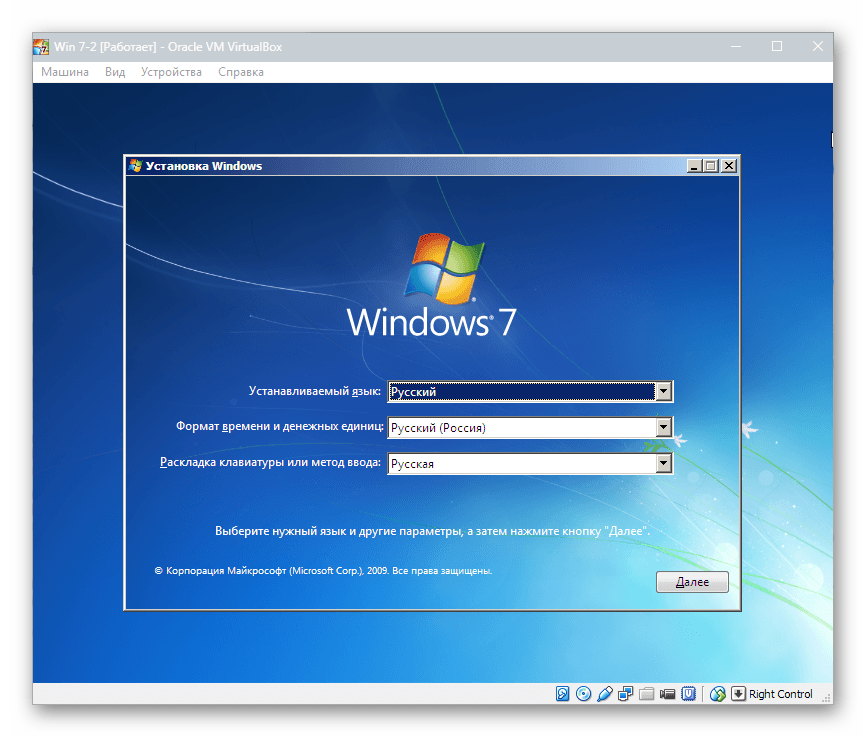 Создаем «полигон для тренировок». Для этого установим операционную систему Windows 7 на VirtualBox. Процесс нельзя назвать сложным, так как ничего особенного в нем нет. Все происходит почти так же, как и на реальном компьютере.