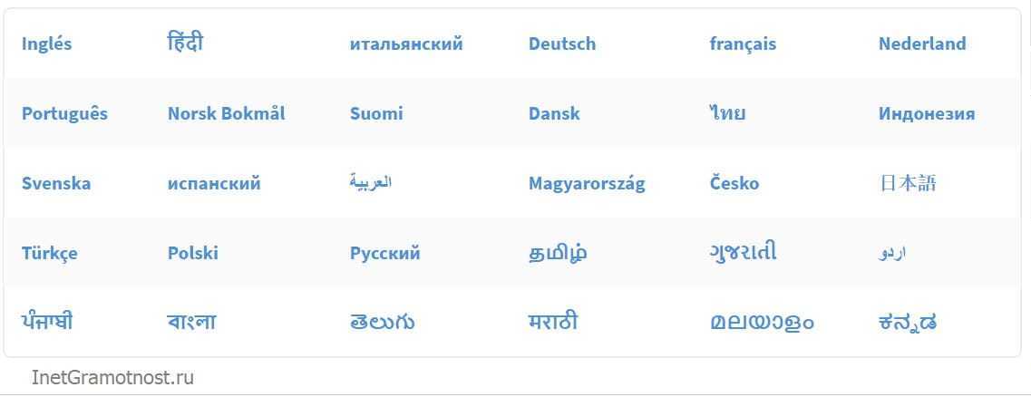 Рис. 5. Примеры языков, для которых сервис Dictation переводит речь в текст.