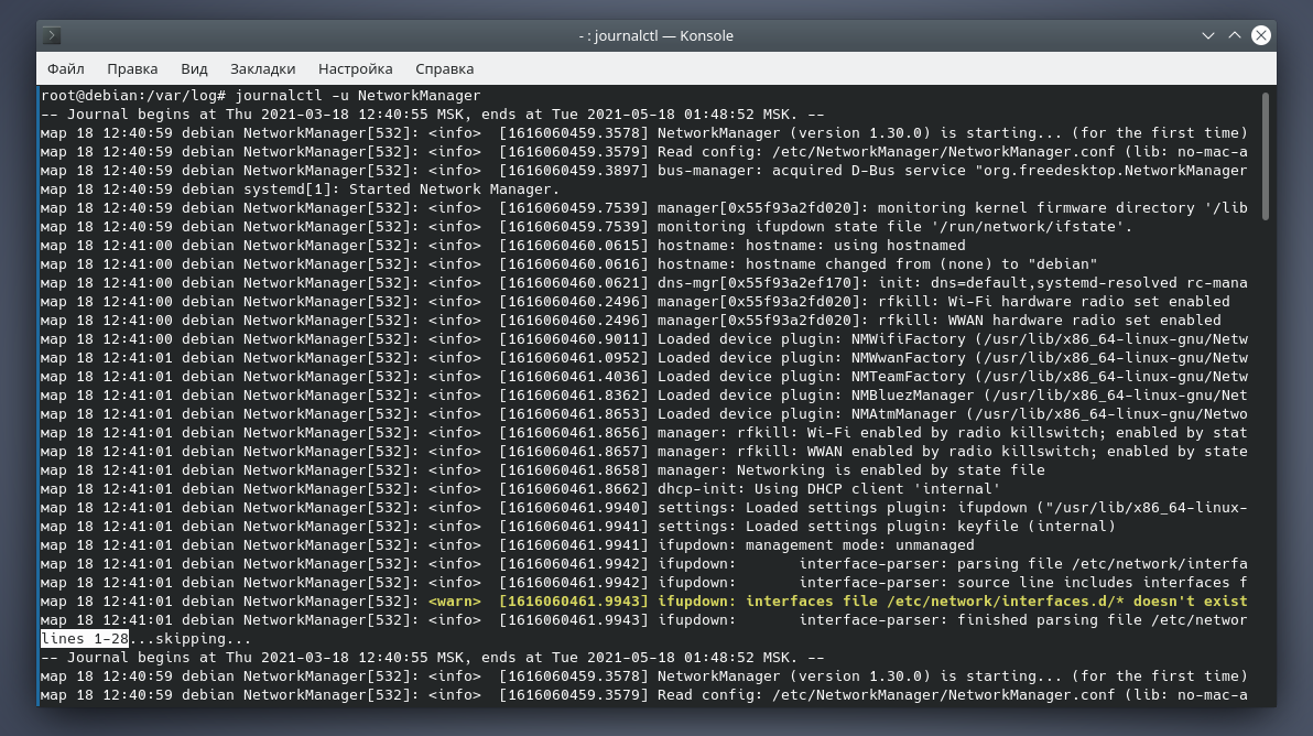 Также можно просмотреть информацию по выбранной службе, например, по NetworkManager: