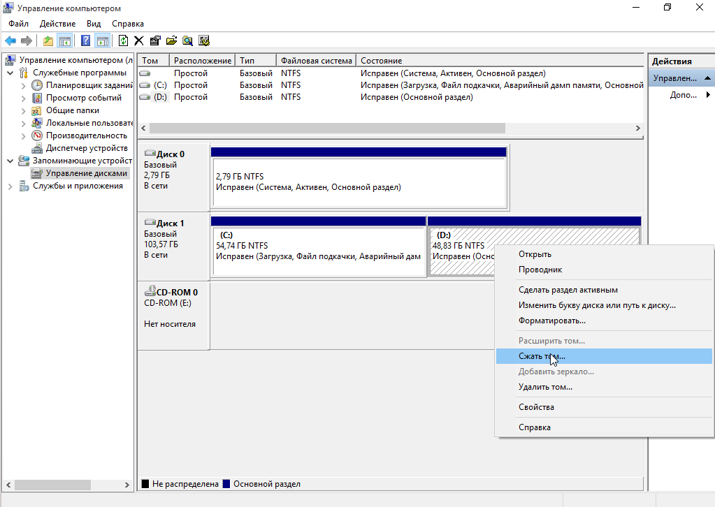 - Через правый клик по Пуску вызовите «Управление дисками».