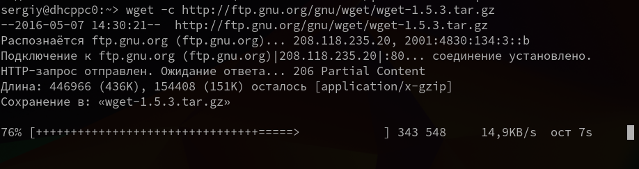 - -с (—continue) — продолжить ранее прерванную загрузку
