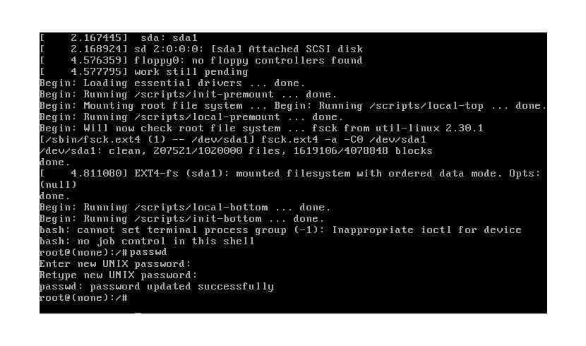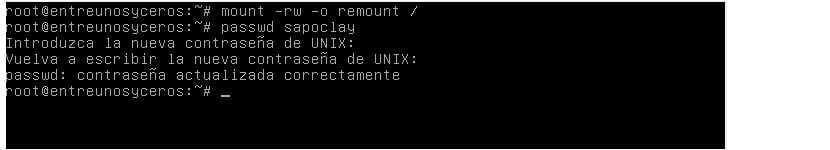 Предыдущий вариант перенесет нас в корневой терминал. Скажем, наша файловая система / может быть смонтирована как доступная только для чтения, поэтому у нас возникнут проблемы при смене пароля. Чтобы избежать этой проблемы, нам нужно будет написать в терминале следующее: смонтировать как чтение-запись: