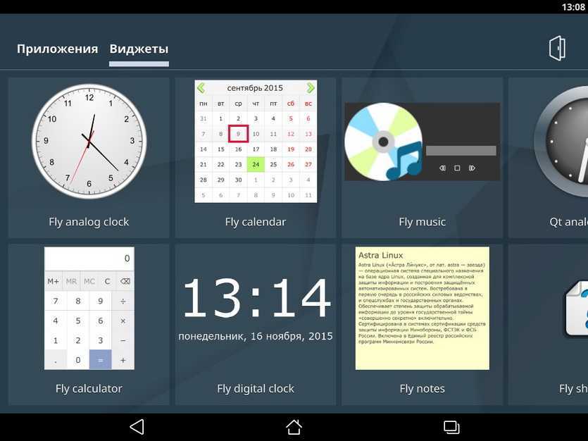 Мобильный режим предлагает собственный «лаунчер» fly, напоминающий по внешнему виду и в использовании Android: сходные рабочие столы, логика работы виджетов, долгий тап для вызова меню.