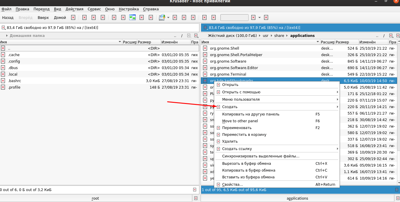 Но опять же, надо в терминале вводить команду создания ярлыка. Давайте создадим два ярлыка создания ярлыков приложений в системном каталоге и в каталоге текущего пользователя.