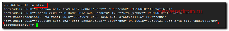 Посмотрим, какую метку получил новый раздел с помощью blkid.