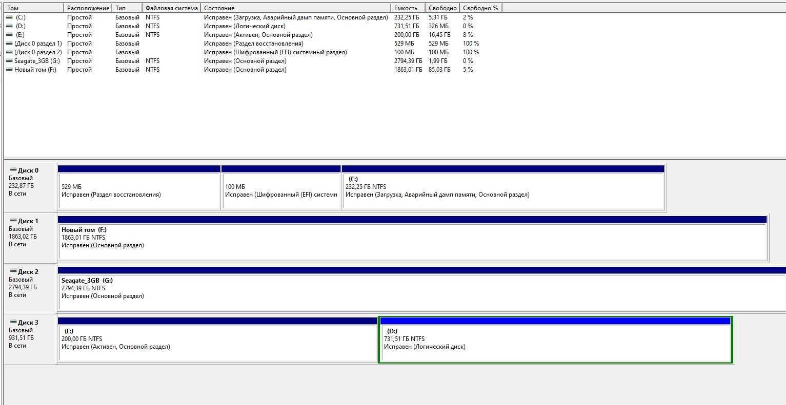 Ну а после у вас появится новый логический диск — в моем случае «D:». Теперь его можно использовать также, как и любой другой диск (проводник его будет видеть).