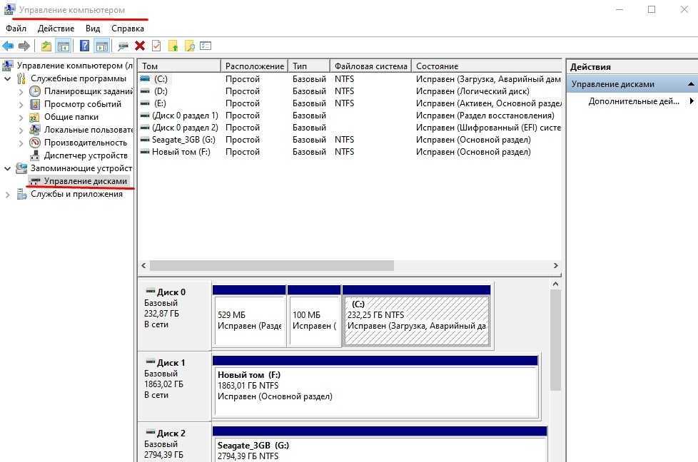 - Перейти в меню пуска и выбрать раздел управления дисками.