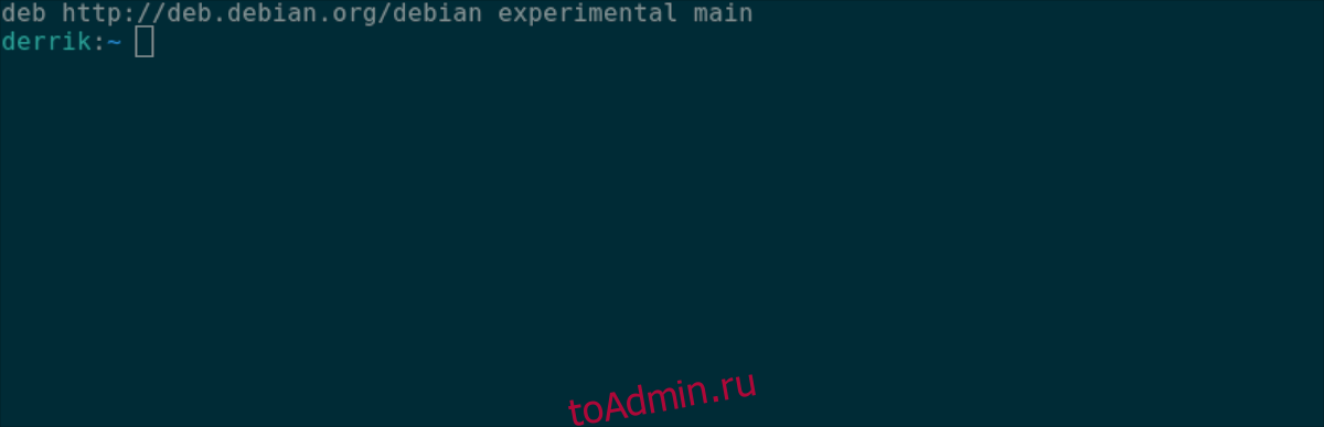 Обратите внимание, вам может понадобиться использовать команду su для доступа к root, если вы не настроили sudoers. Теперь внутри файла sources.list добавьте следующую строку: