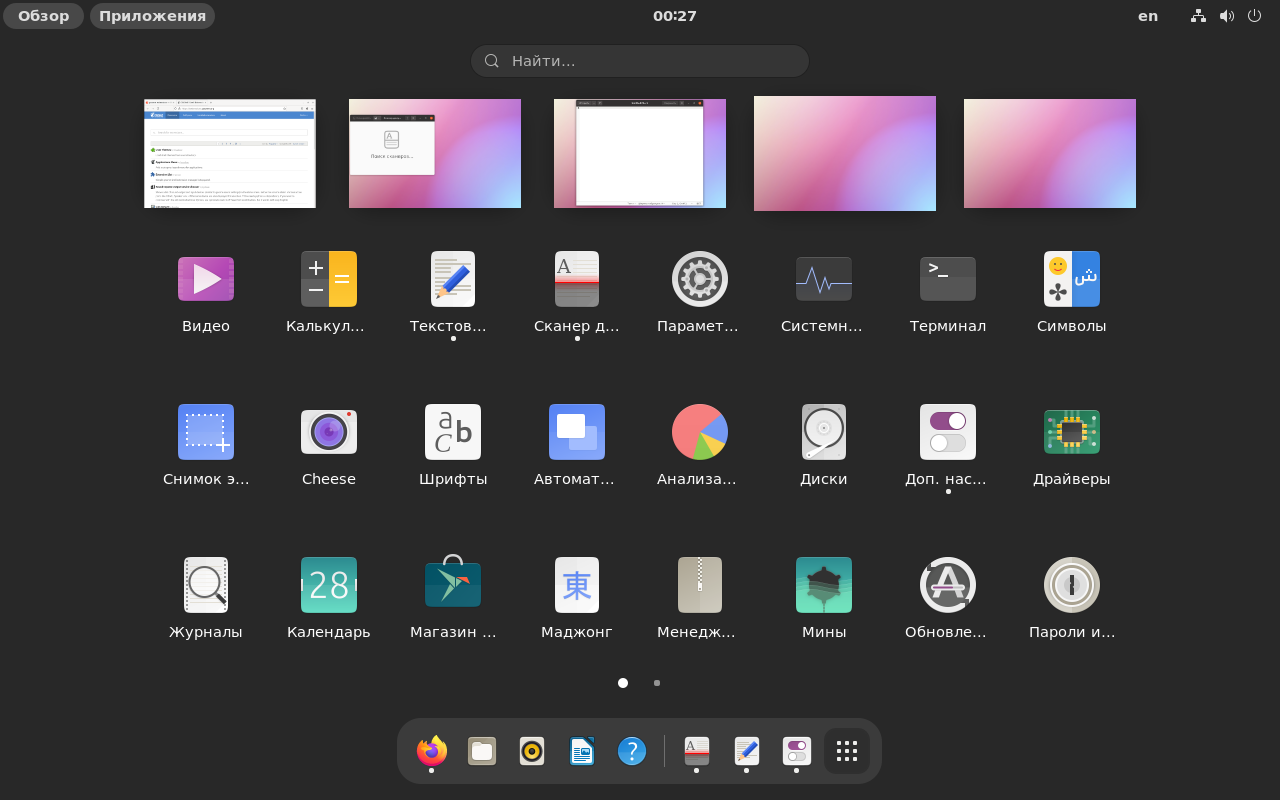 Приложения и Обзор теперь представляют единое целое. Концепция, заложенная ещё в GNOME 3, когда намеренно отказались от кнопок Развернуть и Свернуть, стала оправдывать себя. Рабочие столы рассматривают не как полноценные окружения, а как пространства под различные задачи.