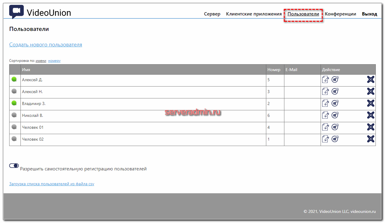 Пользователям, запустившим ваш установщик, будет предложено сразу же зарегистрироваться на сервере, если вы еще не сделали это ранее за них сами. Всех пользователей вашего сервера вы можете посмотреть в разделе Пользователи. Там же их можно добавлять или редактировать.