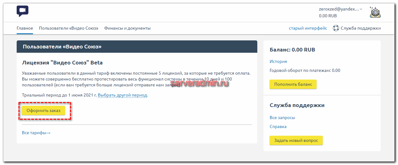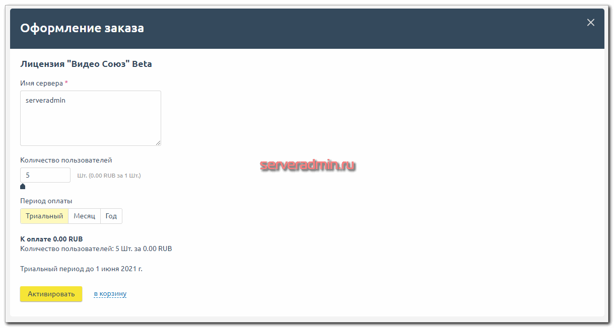 После регистрации в личном кабинете, нажмите Оформить заказ и заполните обязательные поля. Нетарифицируемыми (бесплатными) являются 5 пользователей. Каждый последующий будет стоить 50 р. в месяц.