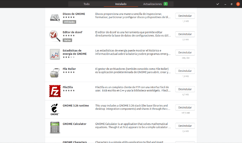 Si ты не хочешь использовать терминал и его команды, вы всегда можете увидеть приложения, установленные в системе, открыв опцию программного обеспечения. Оказавшись в нем, вам просто нужно нажать на вкладка «Установлено». Там вы увидите список установленных приложений.