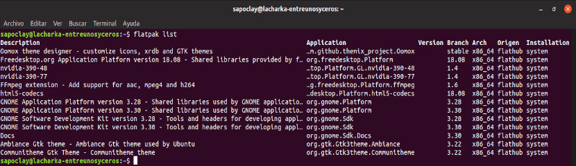 к перечислить все установленные пакеты Flatpak В системе, в терминале (Ctrl + Alt + T) воспользуемся командой: