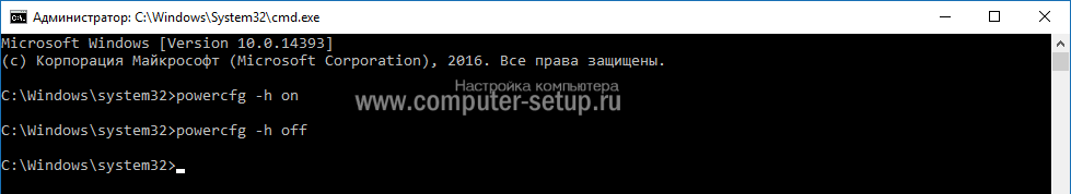 Отключение гибернации командной строкой Windows 10
