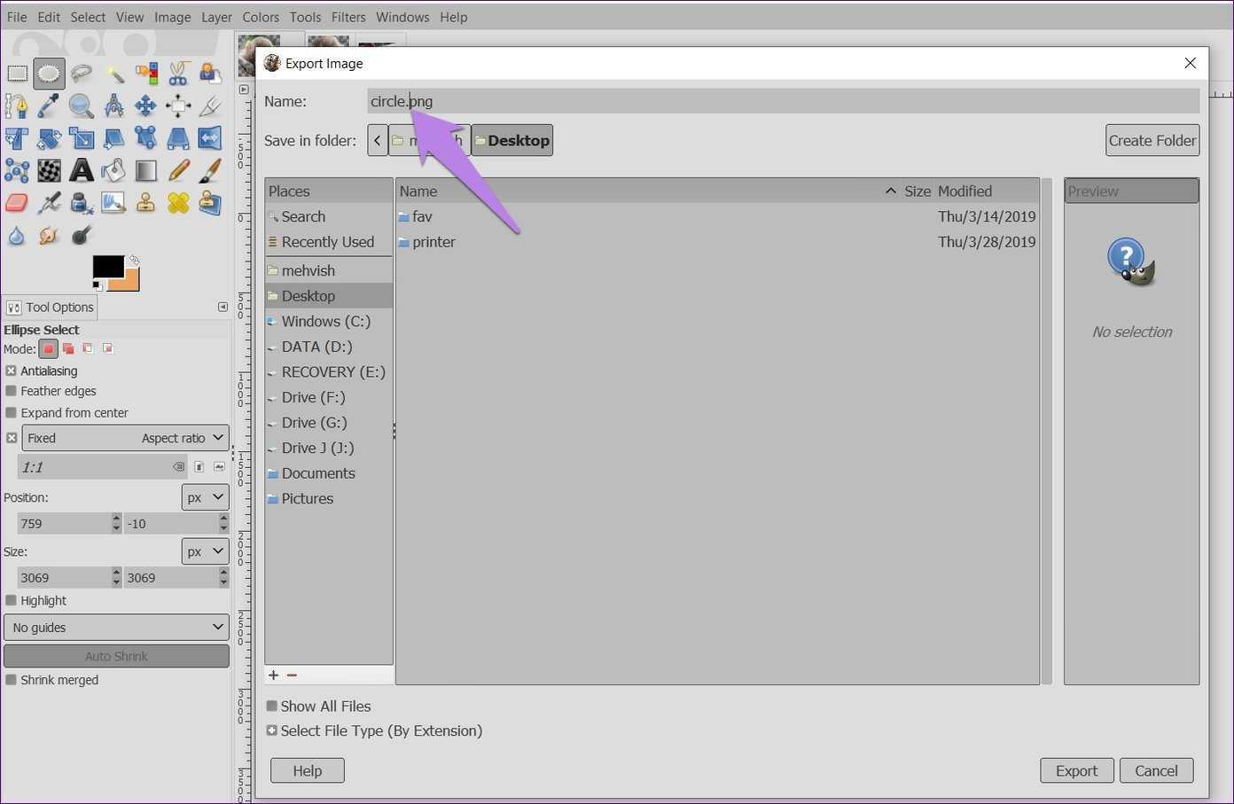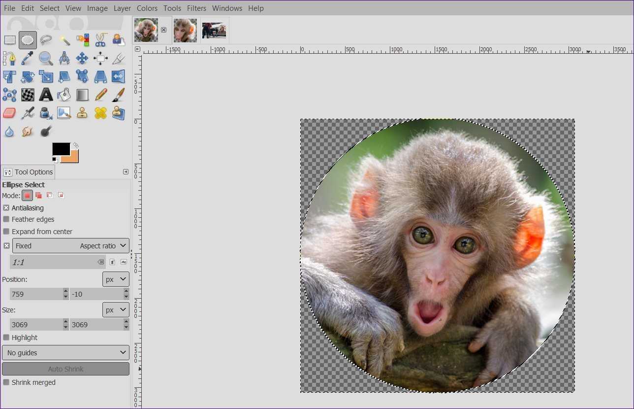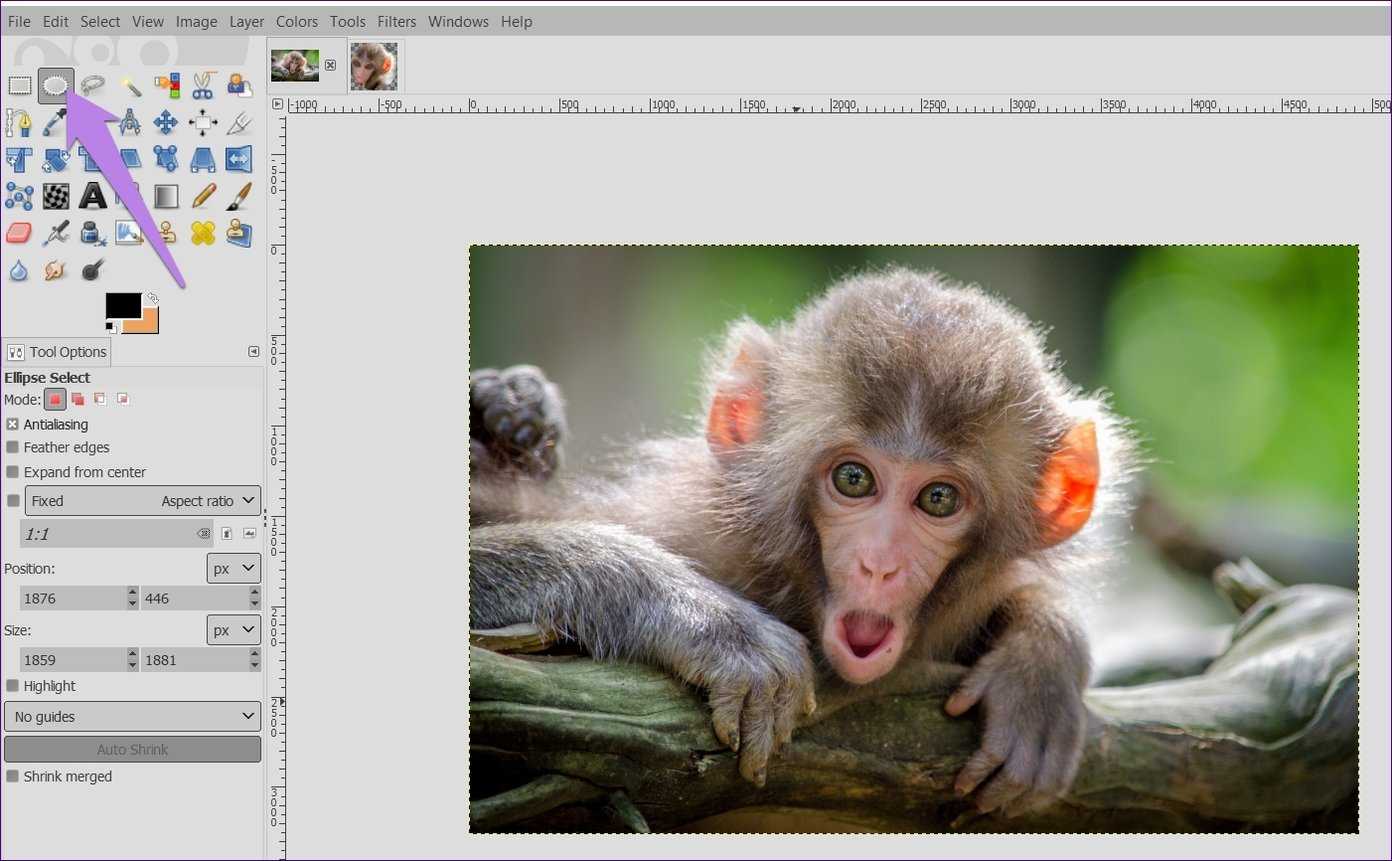 Шаг 2 : Поскольку GIMP не предлагает встроенный способ обрезать изображение в круглую форму, мы воспользуемся инструментом выбора Ellipse. Для этого нажмите на инструмент Эллипс на панели инструментов, который имеет овальную форму. Или нажмите клавишу E на клавиатуре, чтобы активировать этот инструмент.