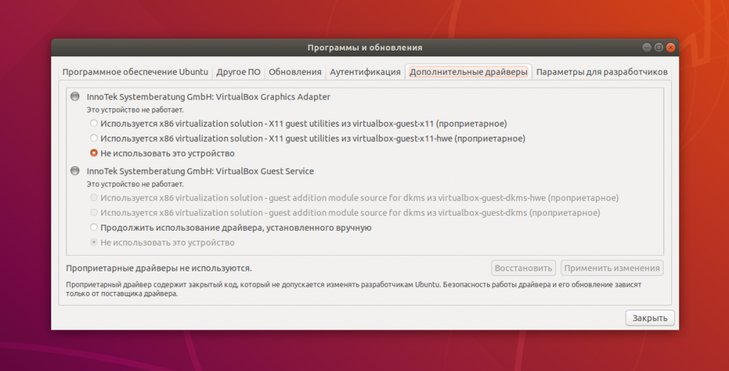 Также можно выбрать тип драйверов (свободные или проприетарные), лучше оставаться на свободных.