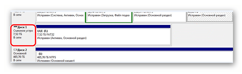 Зайдите в консоль управления дисками Windows на вашем компьютере. Для этого перейдите по такому пути: Флешка будет отображаться в таком виде, как показано на фото ниже.
