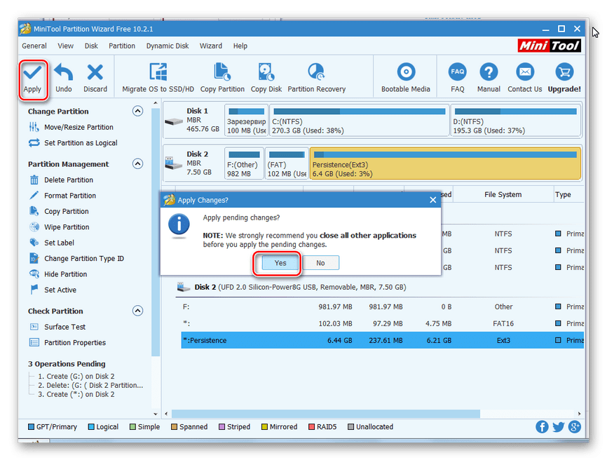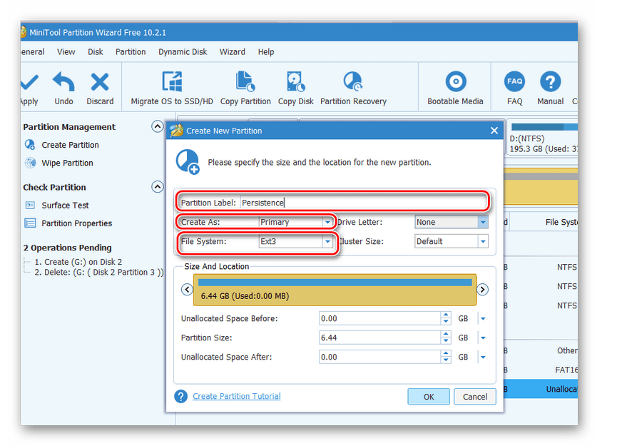 Далее повторите все действия по созданию persistence-раздела с помощью утилиты MiniTool Partition Wizard, описанной в предыдущем разделе.