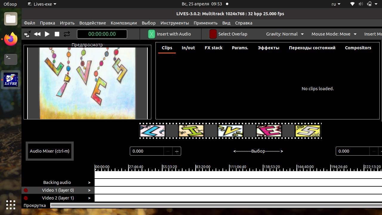 Можно использовать один из двух режимов: фрагментное редактирование (более простой интерфейс) и редактирование с использованием нескольких дорожек. Чтобы начать использовать Lives, откройте терминал, обновите список пакетов и запустите установку: