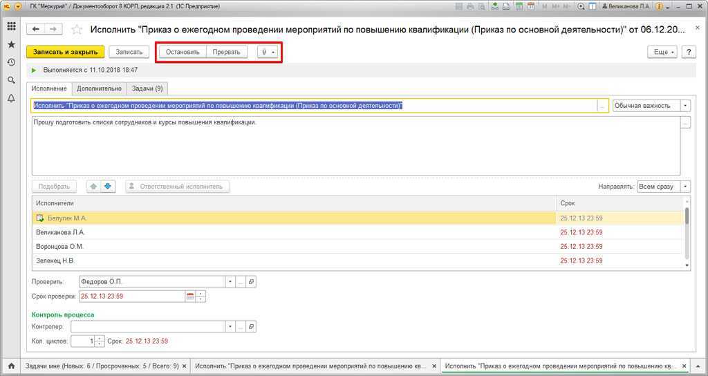 У руководителя есть права для того, чтобы вовсе остановить бизнес-процесс. Он может быть запущен по ошибке или потерять свою актуальность.