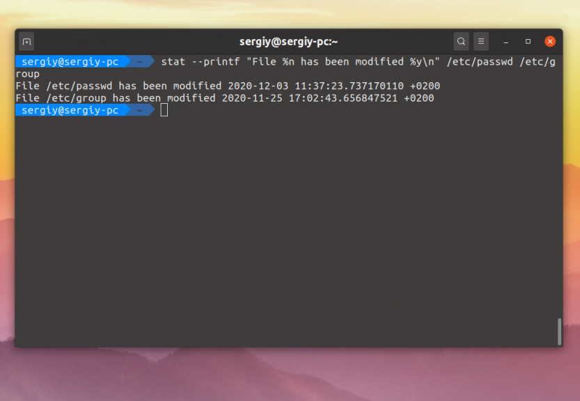 Надо ещё немного поговорить про формат времени. Например, время последнего доступа к файлу — 2020-12-02 18:25:01.043831739 +0200. Это время показывается с учётом временной зоны. А цифры +0200 показывают, что временная зона на компьютере, который создал или модифицировал этот файл на два часа больше чем UTC, то есть Europe/Kiev в зимнее время.