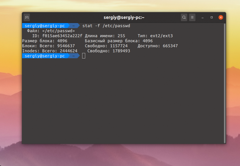 Дальше идут общее количество блоков в системе и количество свободных блоков.