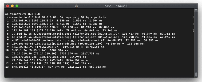 - Complete route list. You will see all the routers on the way, with their IP addresses and the time it took. You can better understand the network.