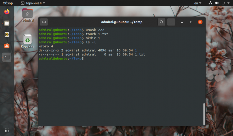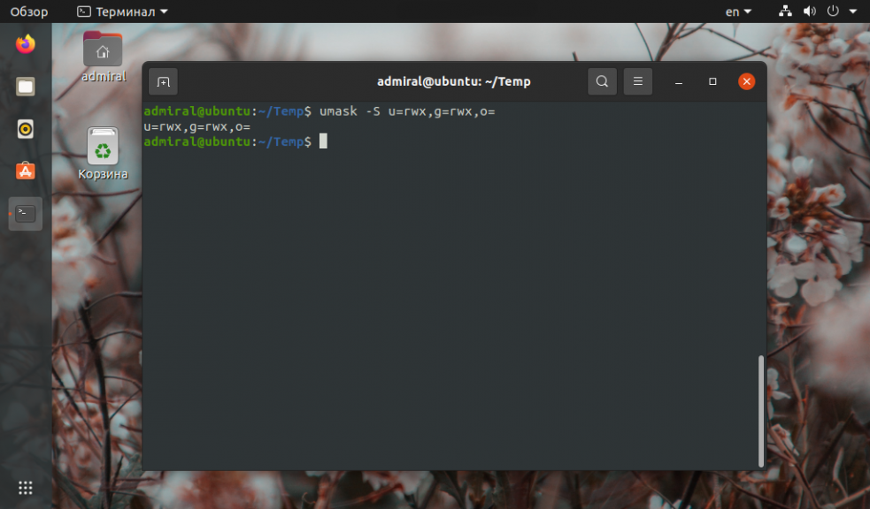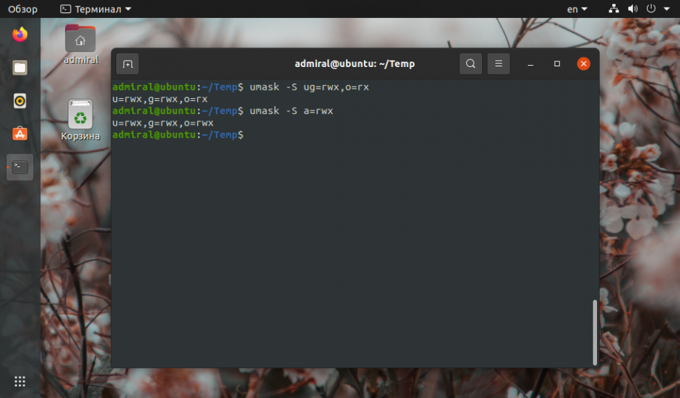 - -p — вывести команду umask, которая при выполнении задаст текущую маску в восьмеричном виде;