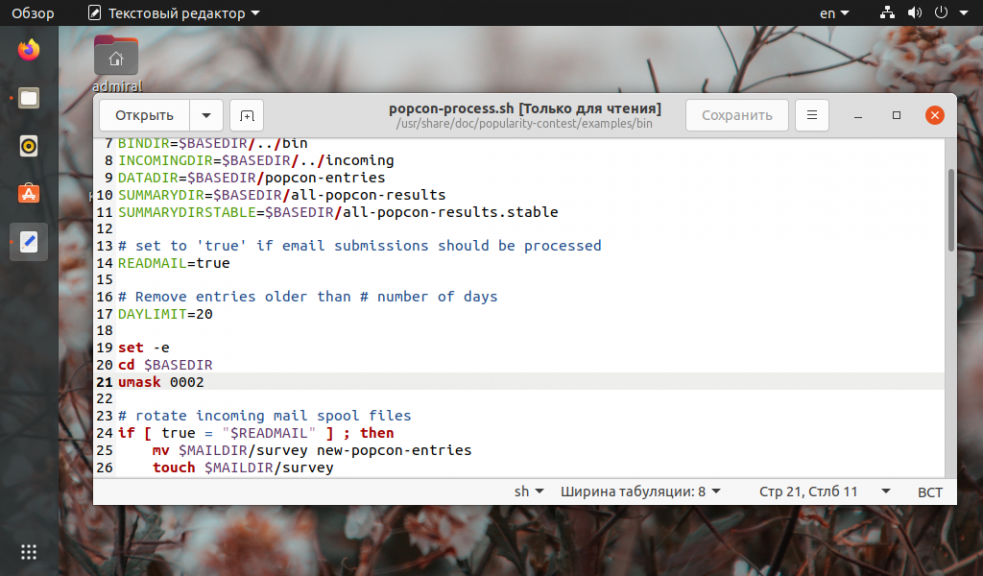 В этом примере при выполнении скрипта необходимо иметь маску по умолчанию, поэтому прописывается команда umask.