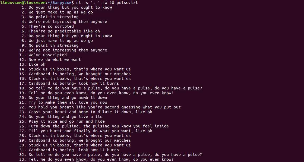 Обозначение чисел в Linux реализуется за счет команды nl.