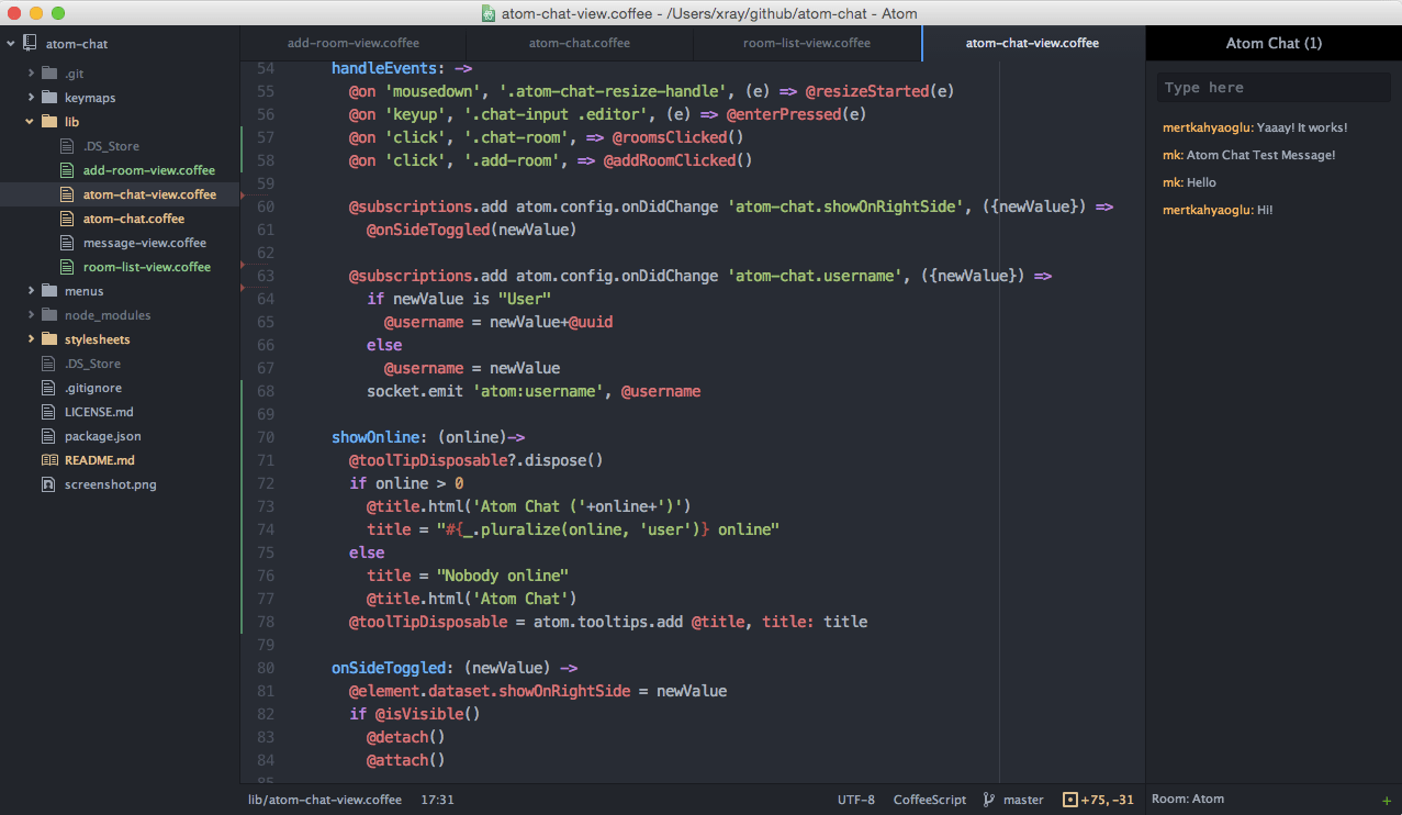 Одной из выдающихся особенностей Atom является то, что плагин Teletype позволяет совместно работать над проектом с другими участниками онлайн.