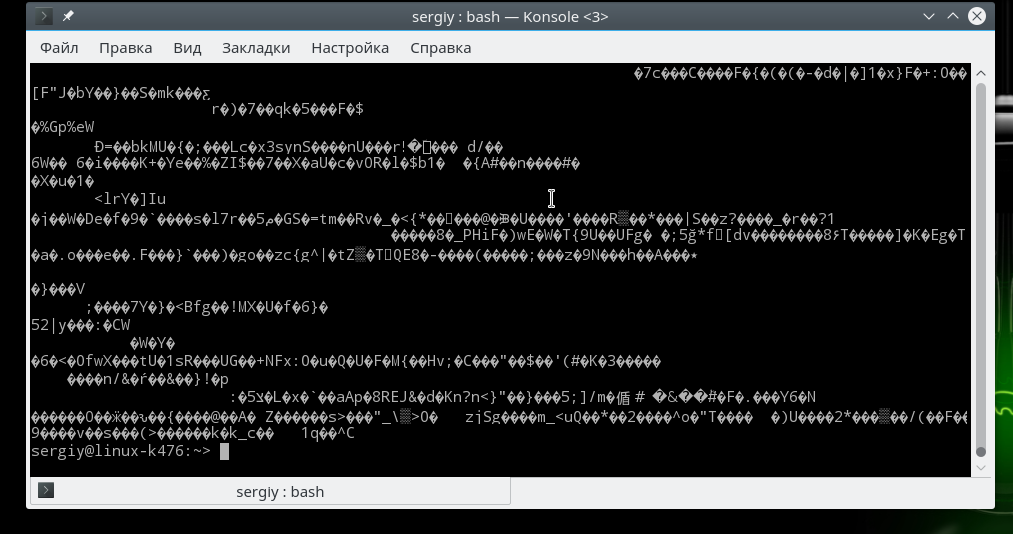 Каталог /dev/ содержит много интересных файлов устройств. Это интерфейсы доступа к аппаратному обеспечению и вам не нужно думать, что это, жесткий диск или экран. Например, вся оперативная память компьютера доступна в виде устройства /dev/mem. С помощью него вы можете иметь прямой доступ к памяти. Мы можем вывести содержимое памяти в терминал: