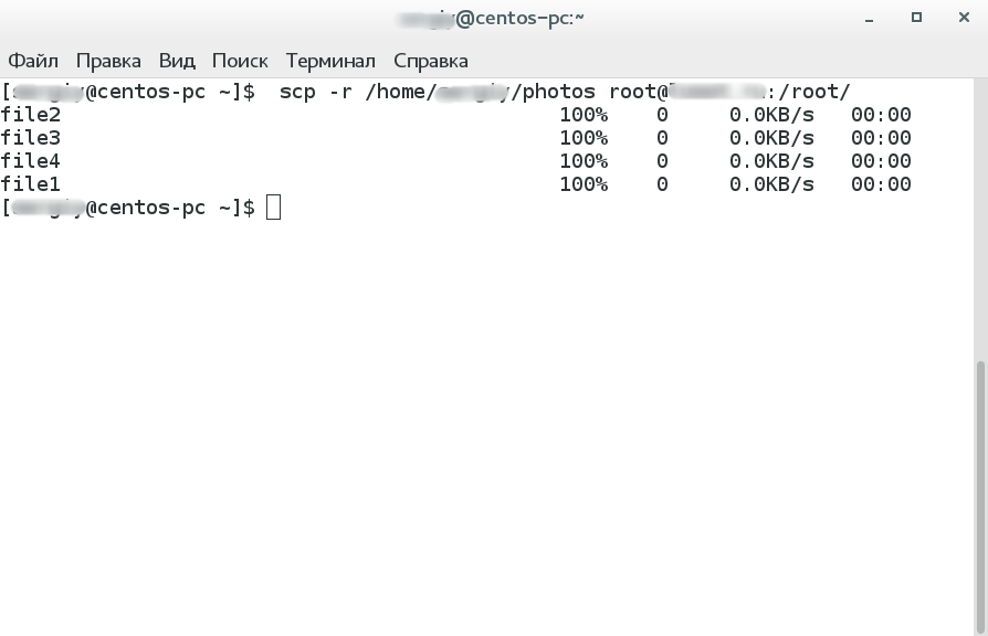 Если вы ознакомились с описанным выше списком опций, то уже знаете, что SCP предлагает передачу целых директорий с использованием опции -r. В таком случае строка в Терминале обретает вид: