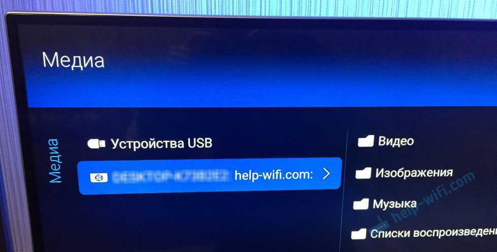 Как можно увидеть на скриншоте выше, доступ сразу будет открыт к трем стандартным папкам: «Видео», «Изображения», «Музыка». Все файлы, которые находятся в этих папках, вы сможете просматривать на телевизоре.