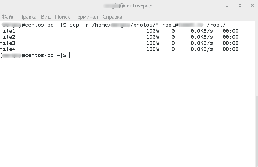 Когда файлов немного и объем небольшой, нет смысла заморачиваться с упаковкой файлов. Можно скопировать всё и так, всю папку целиком со вложенной структурой. Для этого нужно использовать опцию -r ( от recursive). Можно использовать её вмести с опцией -v ( от verbose) которая позволит наблюдать подробно ход процесса копирования — какие файлы передаются по сети, видеть прогресс.