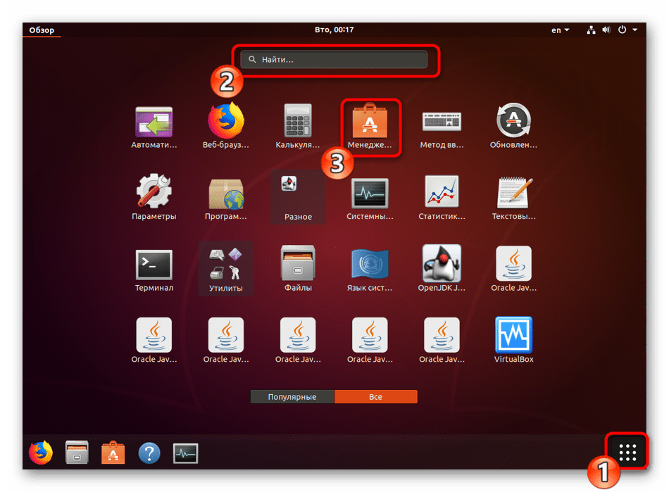 Как мы уже написали выше, «Менеджер приложений» имеется в стандартной сборке Ubuntu и не требует дополнительной инсталляции. Поэтому перед началом выполнения процедуры убедитесь в том, что программа точно отсутствует. Для этого зайдите в меню, попытайтесь выполнить поиск и обнаружить необходимый инструмент