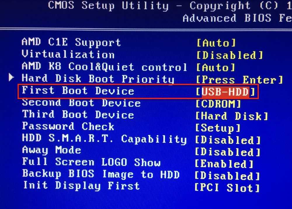 Пример настройки BIOS для загрузки с USB-флешки: