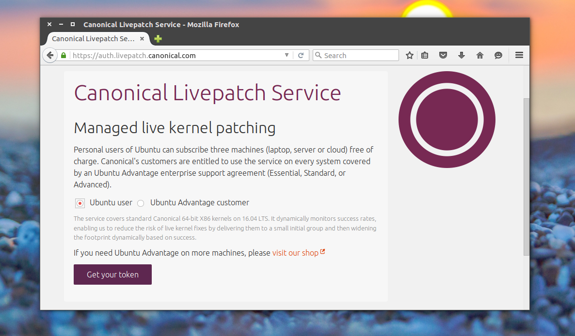 Для того чтобы использовать службу Canonical Livepatch вам необходимо авторизоваться на https://auth.livepatch.canonical.com/ с помощью аккаунта Ubuntu One и указать являетесь ли вы обычным пользователем Ubuntu или абонентом.