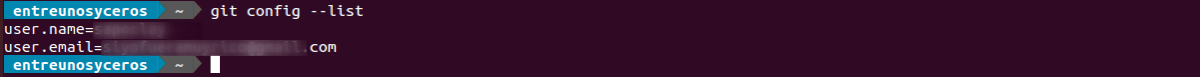 git config --global user.name "Nuestro nombre" git config --global user.email "tudireccion@dominio.com"
