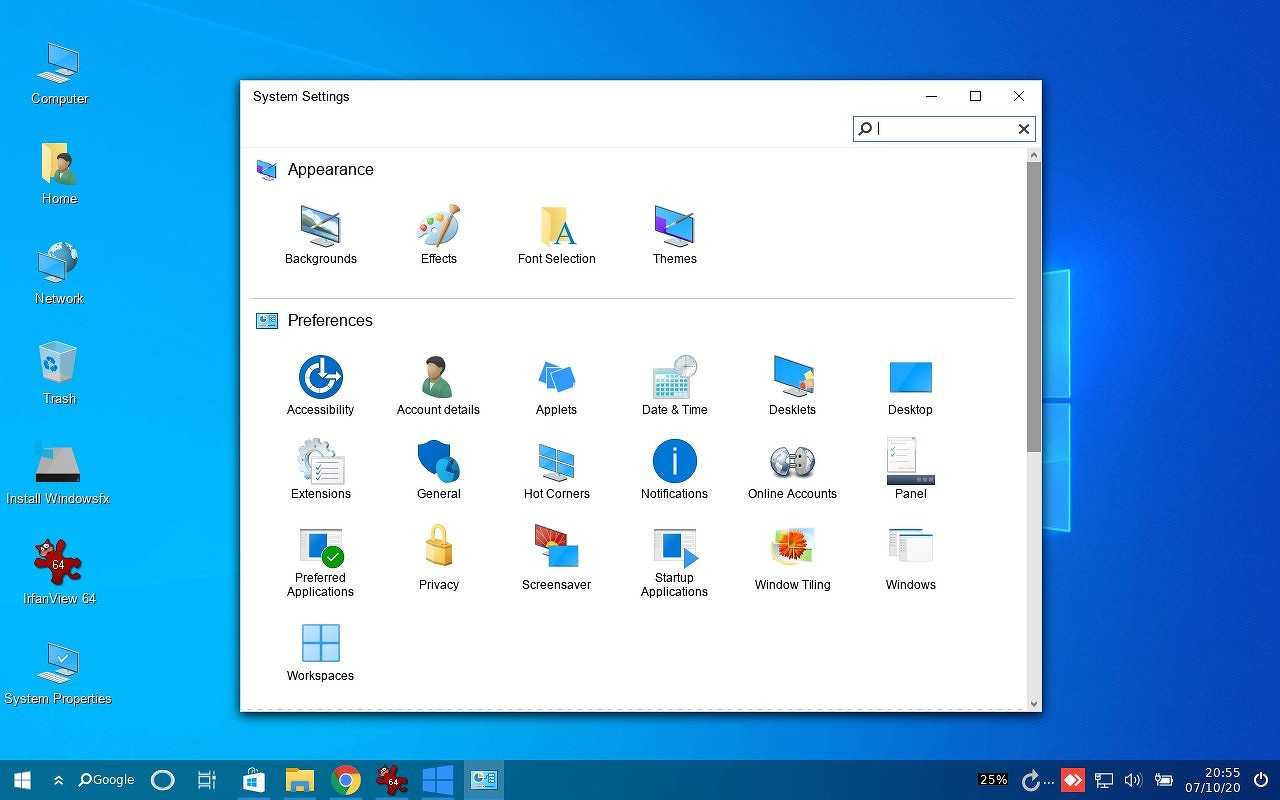 В составе Linuxfx предустановлена WINE (система API Windows), позволяющая запускать на Linux программы, написанные для Windows, а также устанавливать их из дистрибутивов с расширениями .exe и .msi. Разработчики постарались скопировать даже «Блокнот», самый простой текстовый редактор.